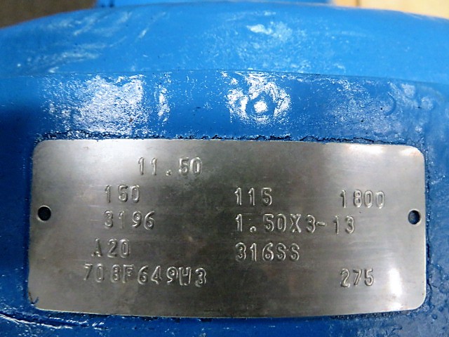 Goulds 3196MTi 1.5×3-13 material 316ss, 11.5″ impeller diameter, 150 gpm, 115 ft HD, 1800 rpm, 275 psi