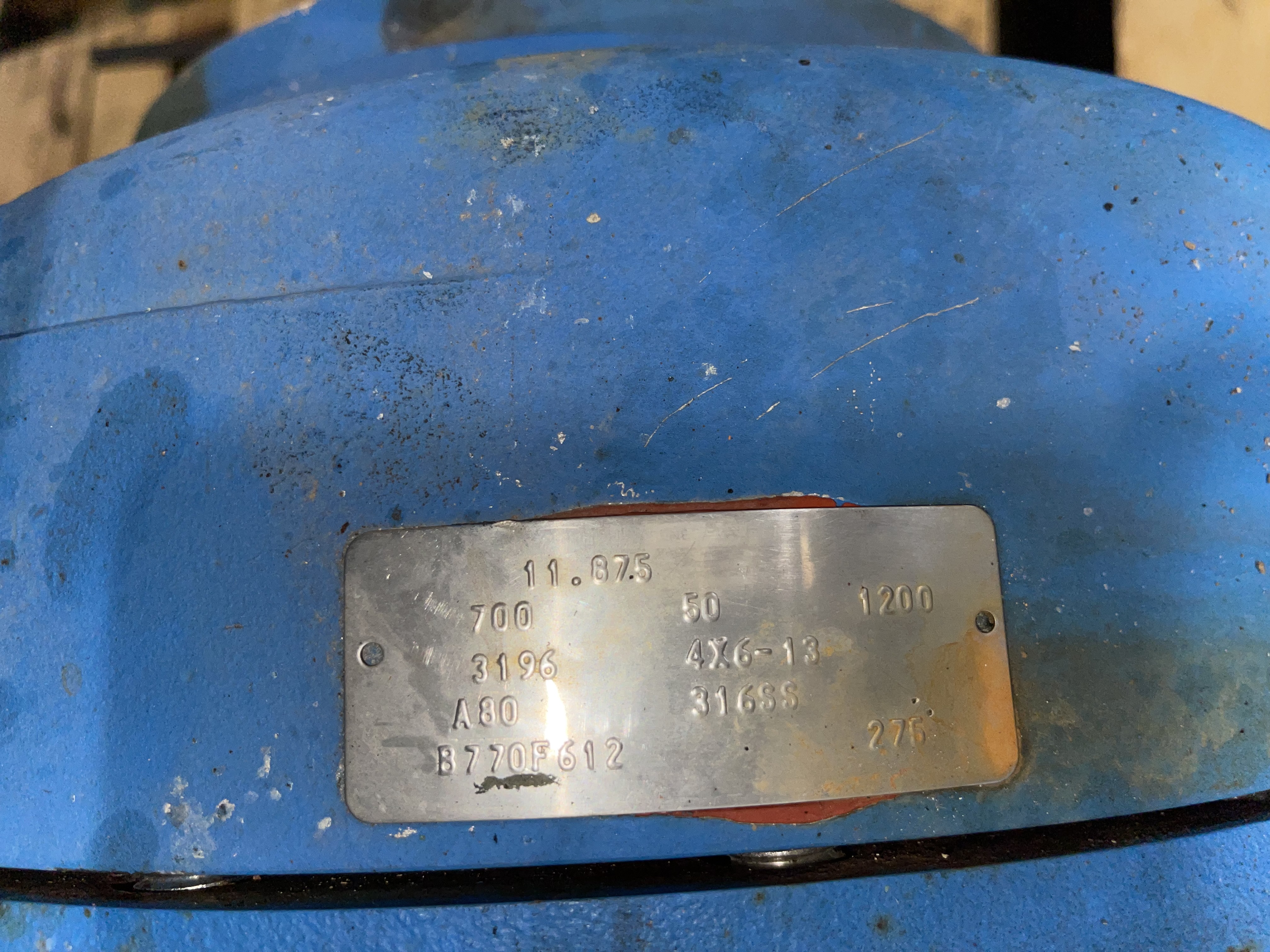 Goulds 3196 MTi size 4x6x13, material 316SS, 700gpm, 50ftHD, 1200rpm, 11.875″ Impeller Diameter, S/N B770F612