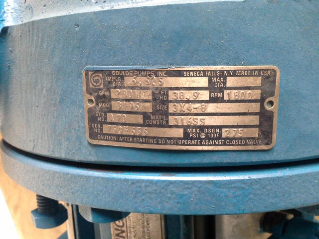Goulds Pump model 3196 size 3×4-8