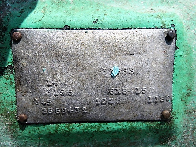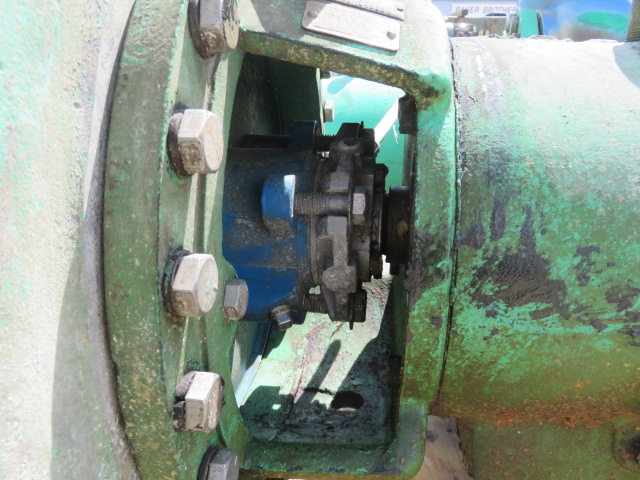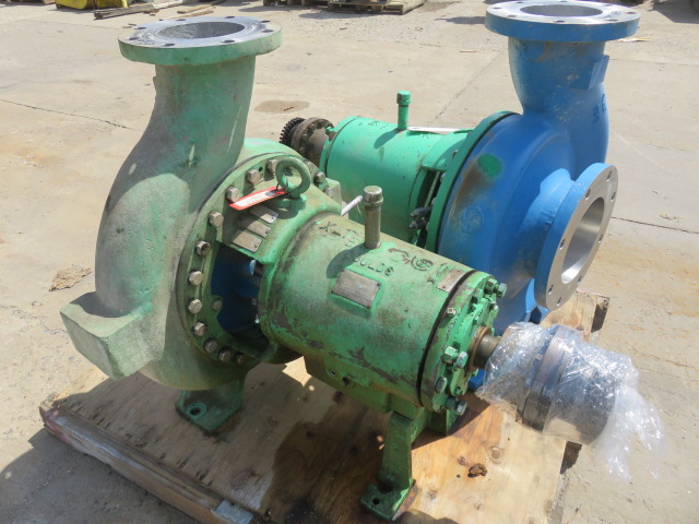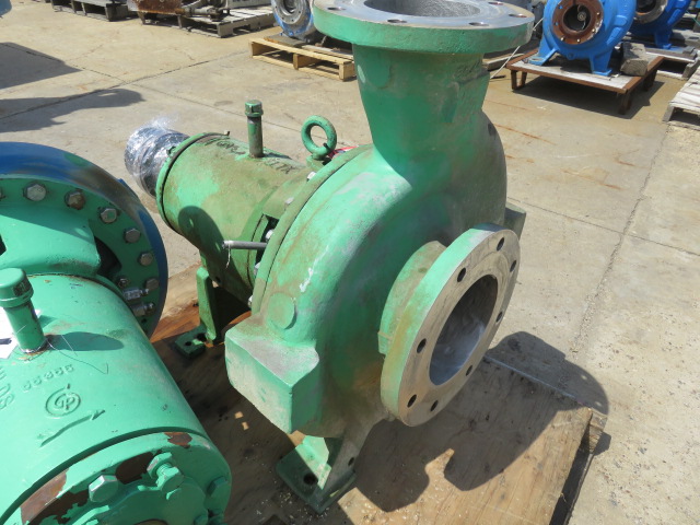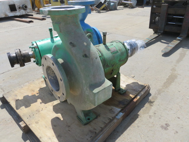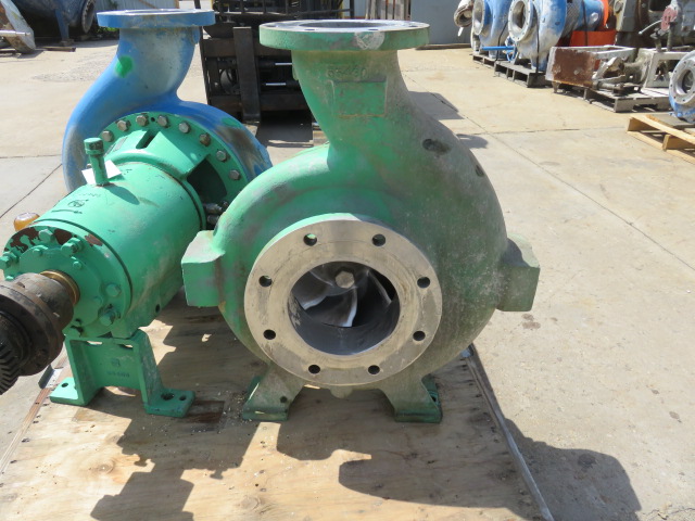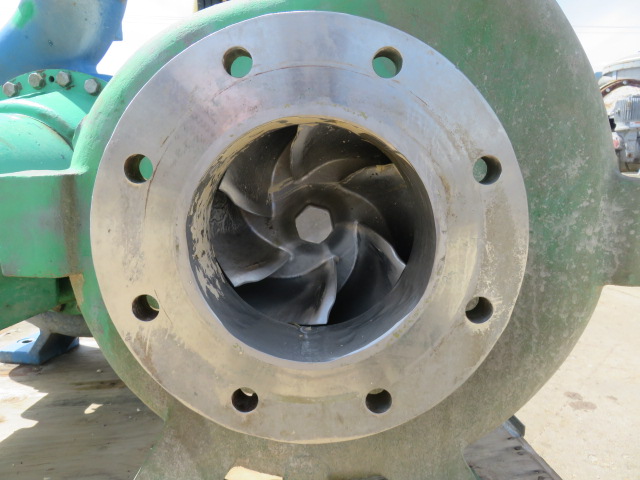 Goulds pump model 3196XLT size 6x8x15, material 316ss, impeller diameter 14 7/8″ 6 vane open, 345 gpm, 102 ft HD, 1180 rpm, serial number 255B432
