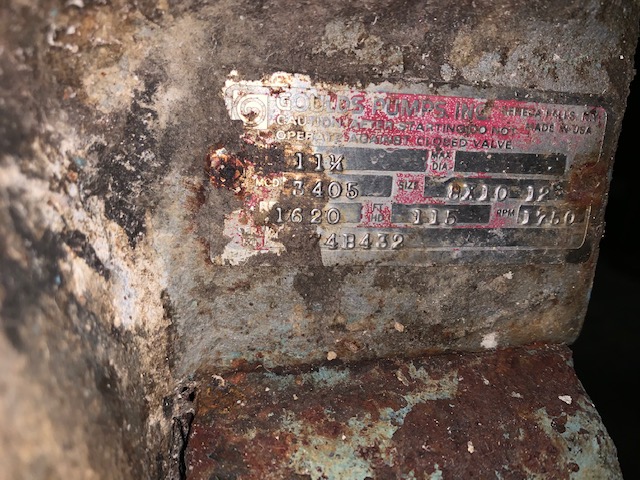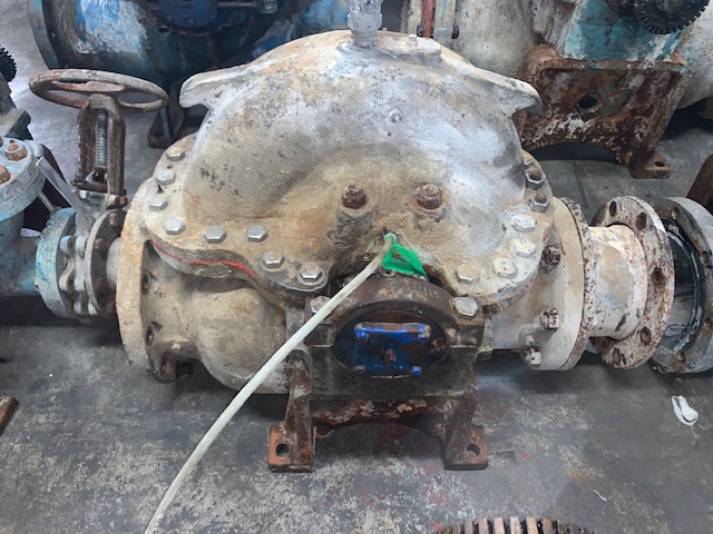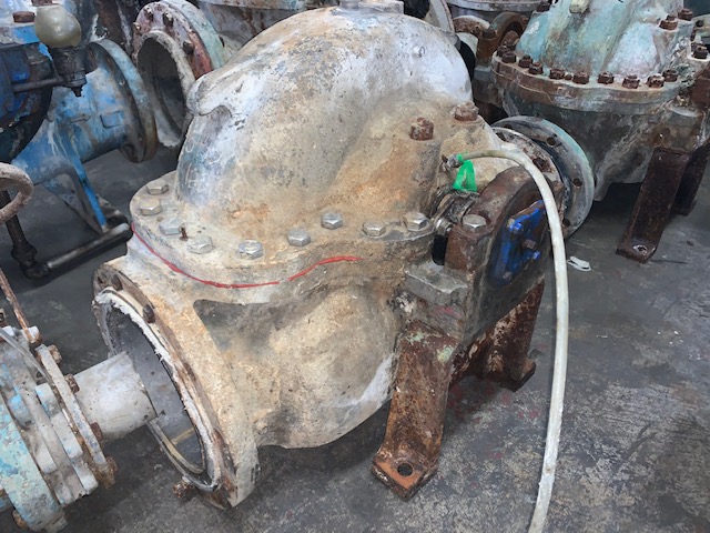 Goulds 3405 split case pump size 8x10x12, material 316 stainless, 11 1/4″ impeller diameter, 1620 gpm, 115 ft HD, 1750 rpm.