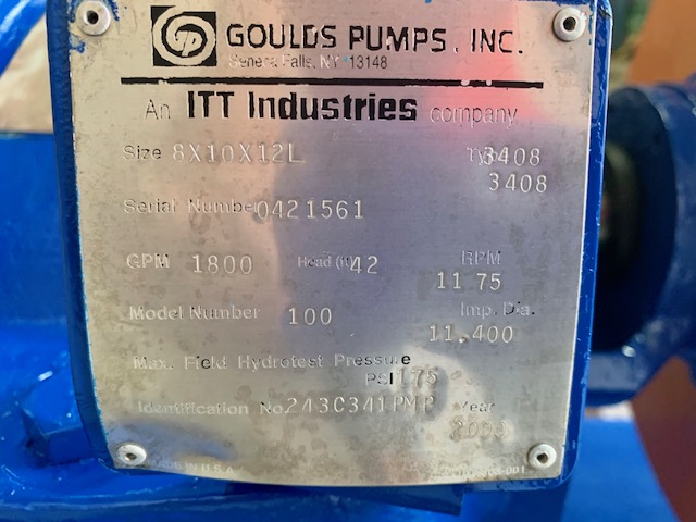 Goulds pump model 3408 size 8×10-12L with base and motor