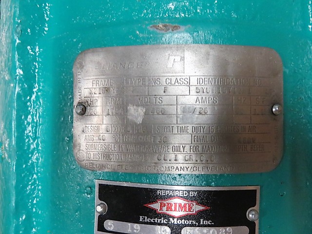 - 100 hp motor, 1790 rpm, 460 v, frame 405 T