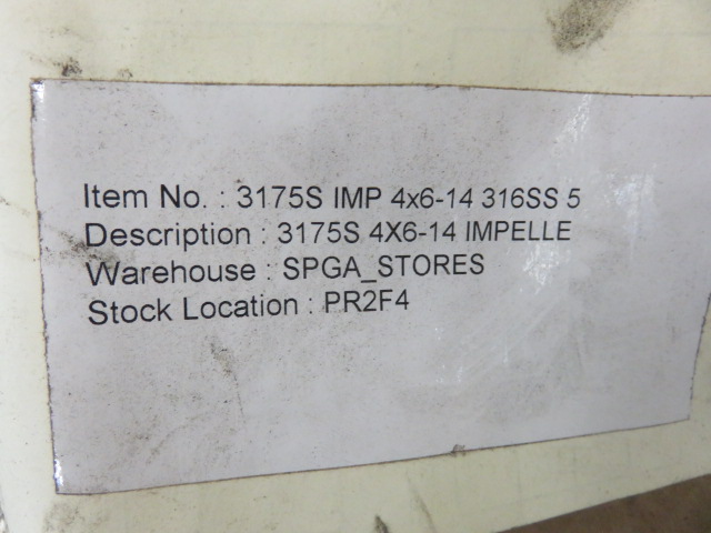 Unused Condition Impeller OEM Goulds 3175 4x6x14, 5 vane open, material 316ss