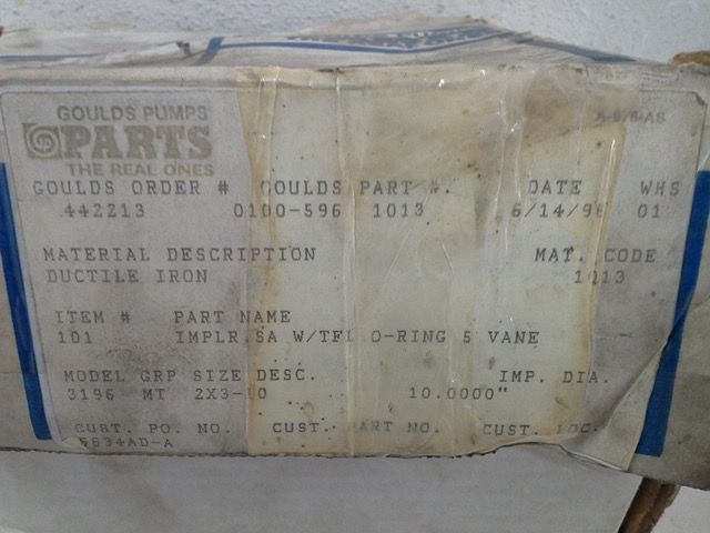 Impeller for Goulds pump model 3196 MT size 2x3x10, impeller diameter 10.0″, new surplus, material DI