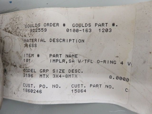 New Impeller for Goulds 3196 size 3x4x8, 4 vane open, 316ss, diameter 8″