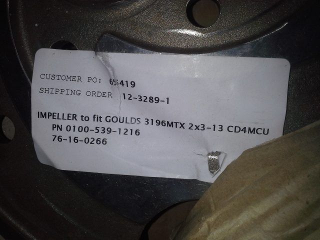 New impeller for Goulds pump model 3196MTX size 2x3x13, material CD4M