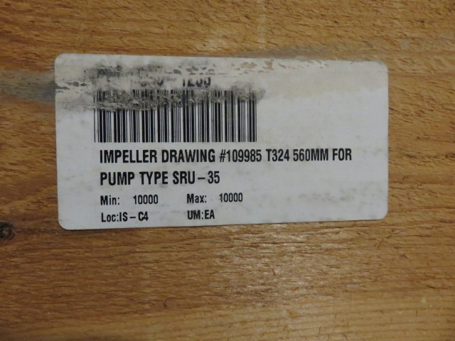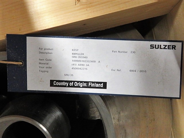 New Surplus impeller for Sulzer pump model SRU-35S560, material T324 stainless, impeller diameter 560mm