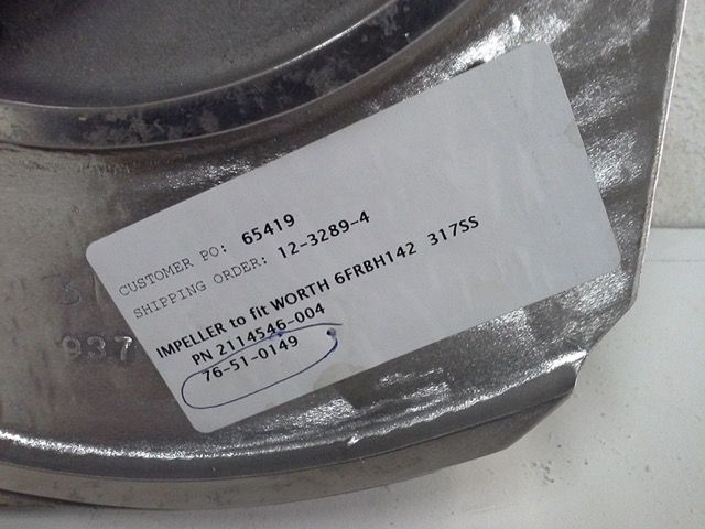 Impeller for Worthington pump model 6FRBH-142,316ss, new surplus, part number 2114546-004