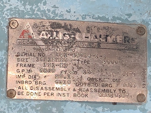 ITT Allis Chalmers pump, type 9000 size 16x12x23