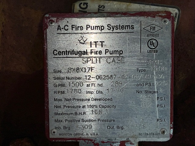 ITT A-C 8100 8x8x17F Centrifugal Fire Pump