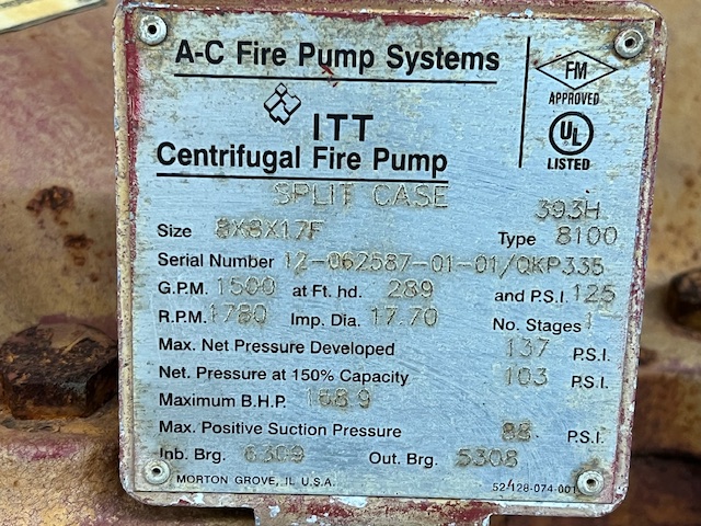 ITT A-C 8100 8x8x17F Centrifugal Fire Pump