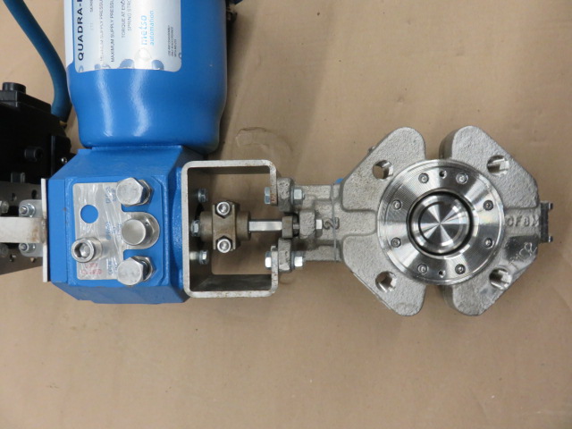 New surplus Jamesbury 2″-150 butterfly valve, model B630-SS, material body/disc 316ss, seat RTFE, with Quadra-Powr X Actuator and NP729S/J3 pneumatic positioner