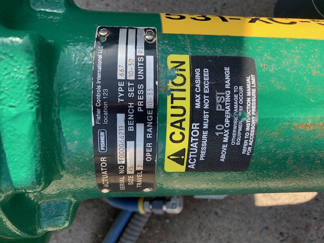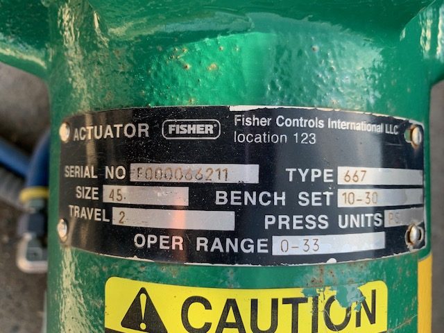 Jetcooker valve with Fisher Pneumatic Actuator and Positioner 4-20mA, used condition! Contact us for more information!