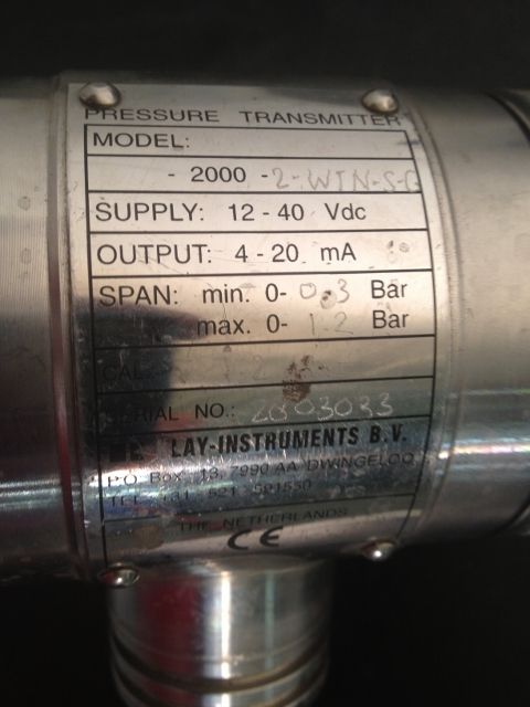 K Lay – Instruments B.V. Pressure Transmitter, 0 to 1.2 bar, new condition