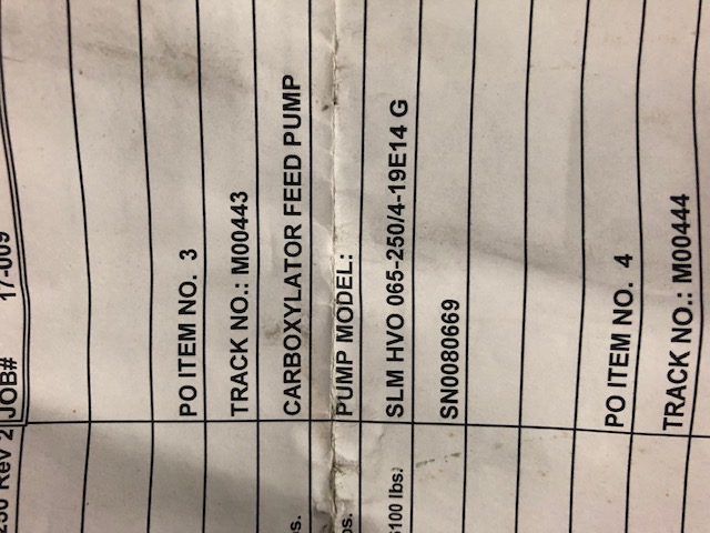 New Storeroom Spare Klaus Union Carboxylator Feed Pump