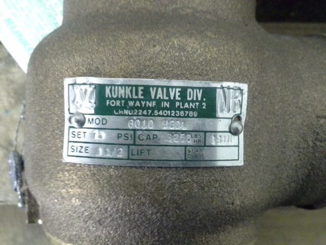 Kunkle safety relief valve, size 1.5″. model 6010HG01, new condition