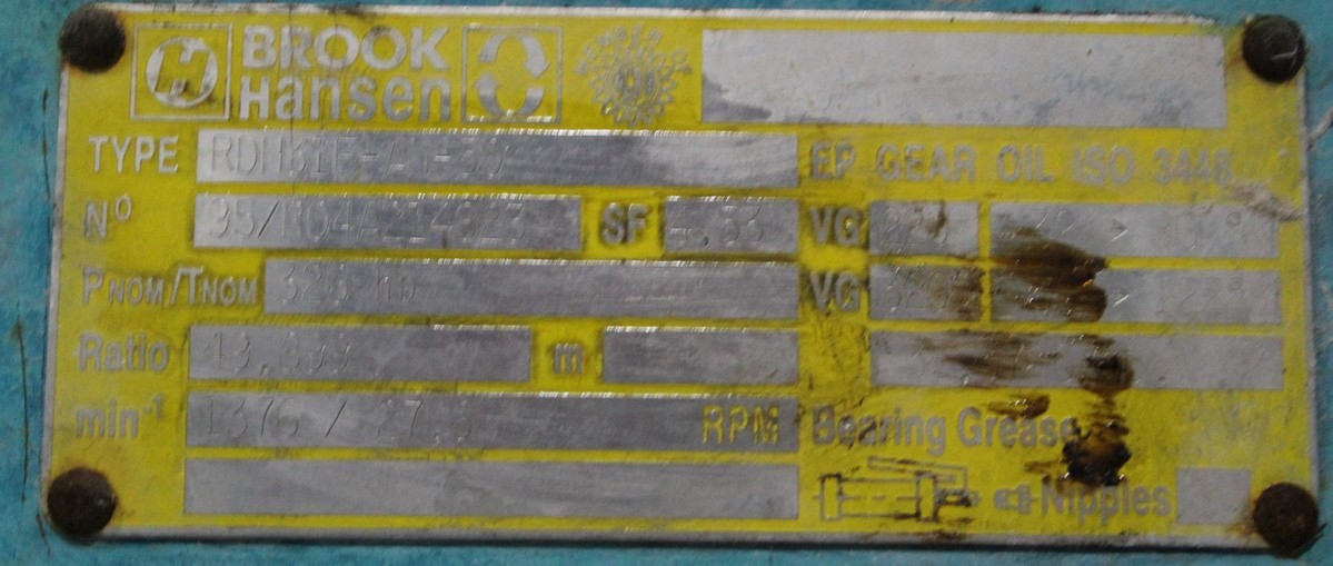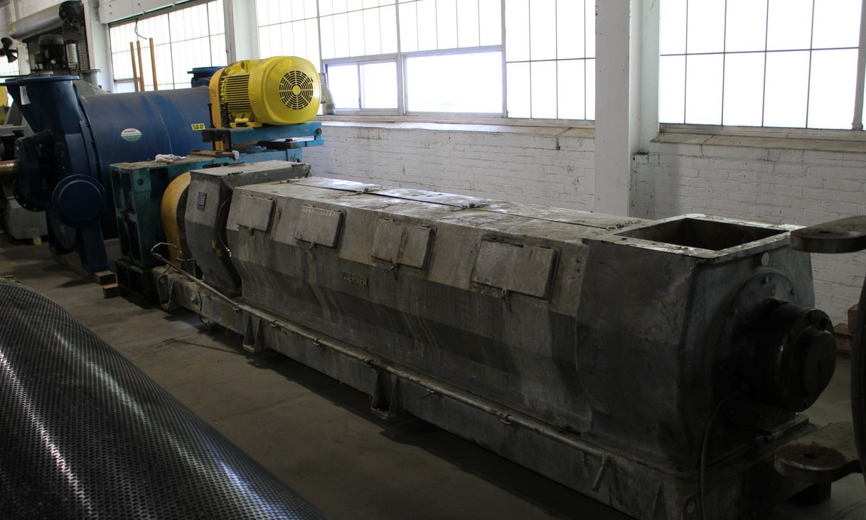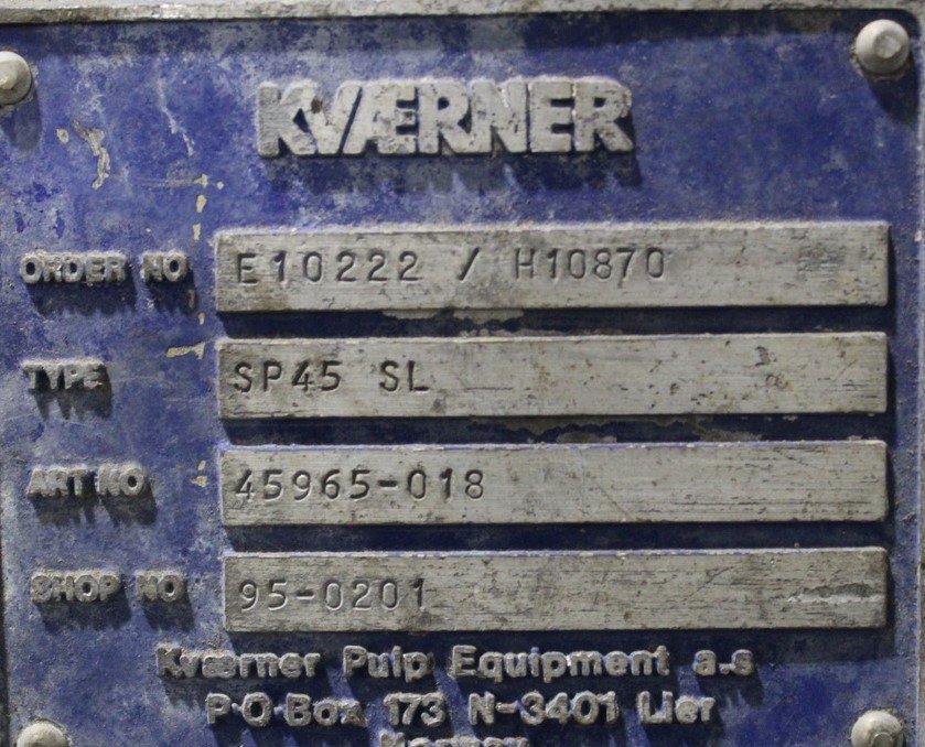 Kvaerner SP45SL Dewatering Screw Press, with Brook Hansen RDH31-AN-50 Gear Drive, 49.899/1 Ratio; with General Eletric A/C Motor 125hp, 1785rpm, 444T Frame