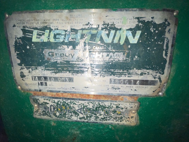 Lightnin Agitator Mixer Model 74Q10CMX; located in our facility in Ham Lake MN