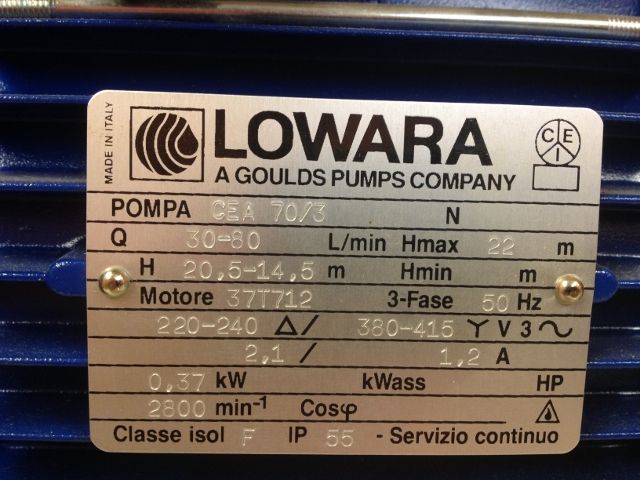 Lowara, a Goulds Pumps Company model CEA 70/3, new in box, material 316 Stainless