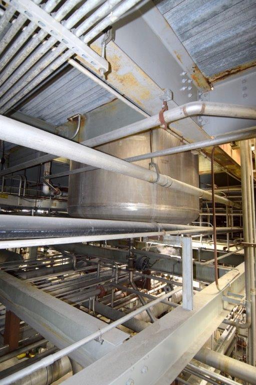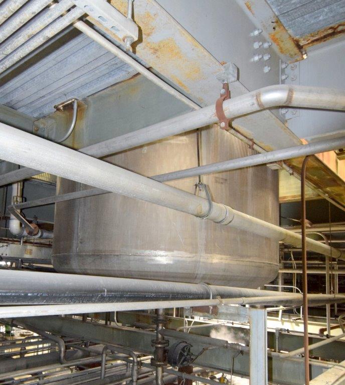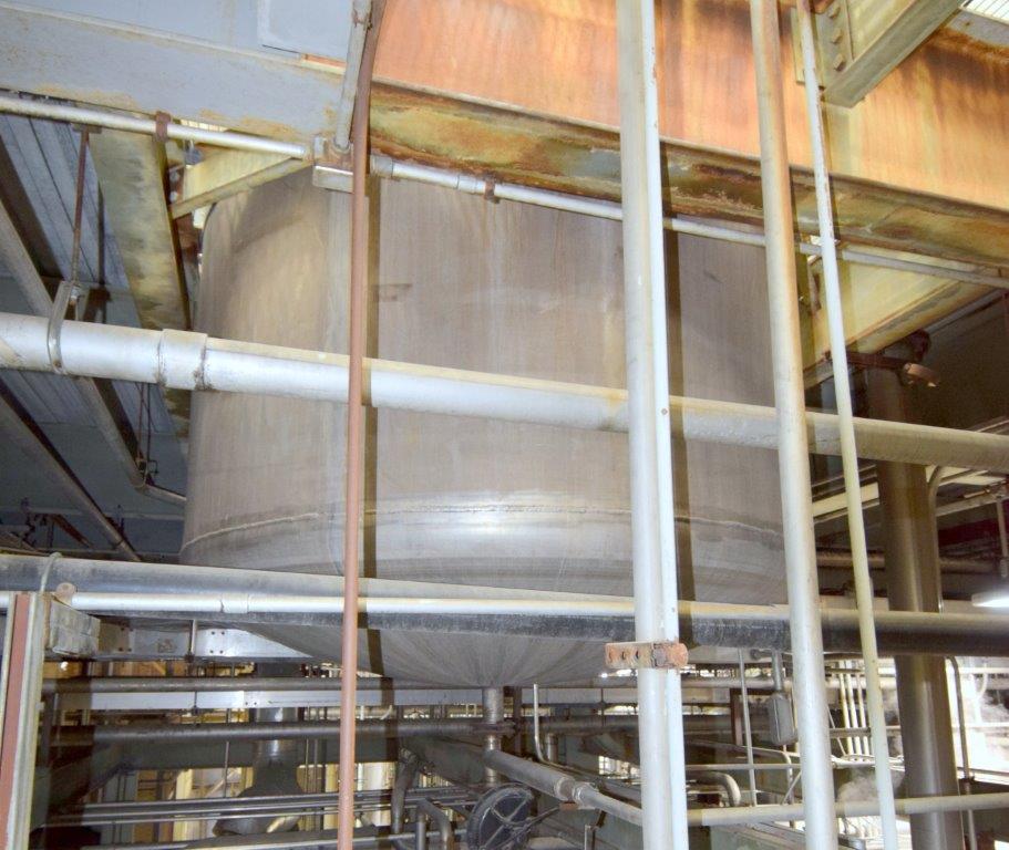 Mason Steel Tank, Approximately 2,500 Gallons, Stainless Steel, Vertical.