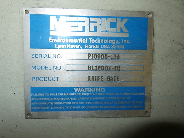 Unused Condition Merrick Knife Gate Valve Model BL1200E-01