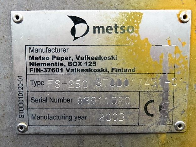 Valmet Metso Optiscreen type FS-250 Pressure Screen with original base, material 316 Stainless.