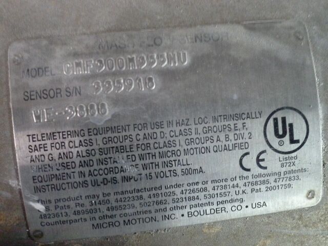 Micromotion Mass Flow Sensor model CMF300M355NU