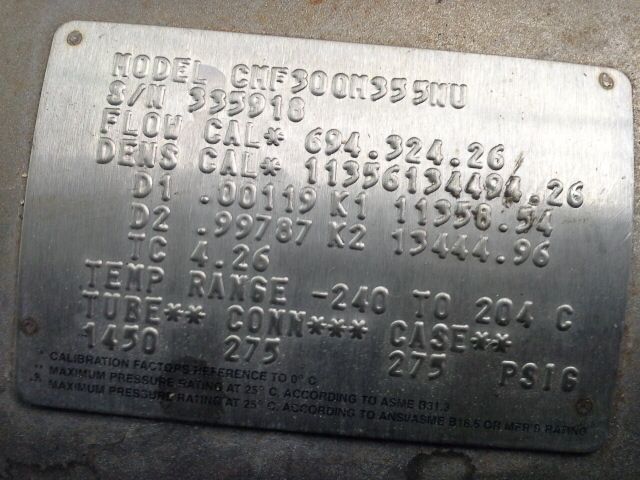 Micromotion Mass Flow Sensor model CMF300M355NU, size 3″ class 150