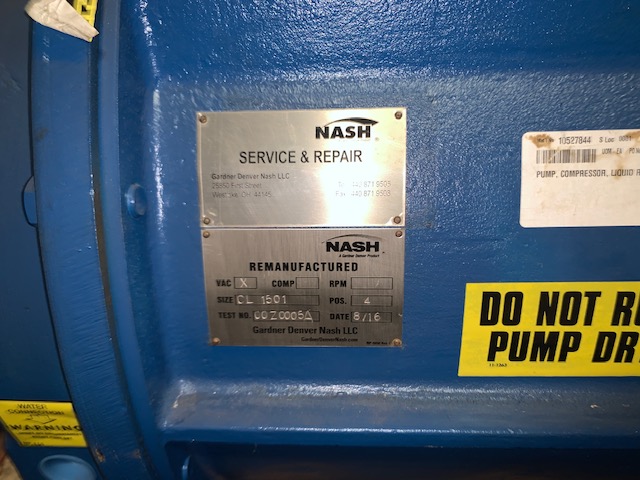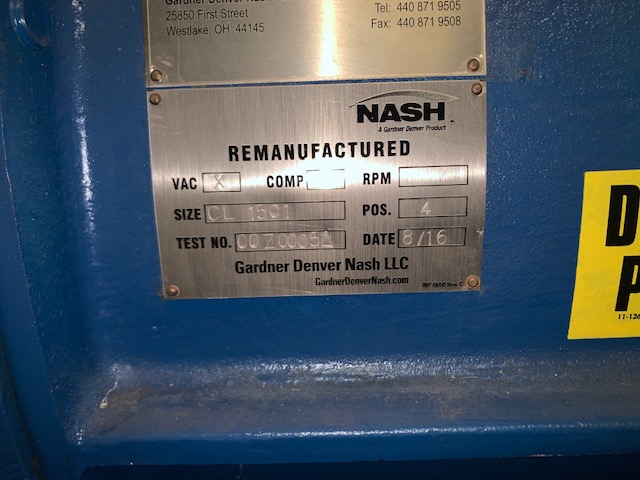 Remanufactured in 2016Â Nash vacuum pump size CL1501, Pos.4, Test No. C0Z0005A