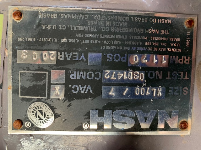 Nash XL 100 / 7 vacuum pump, CI material; Test No. 03D1472; Year 2000; RPM 1170