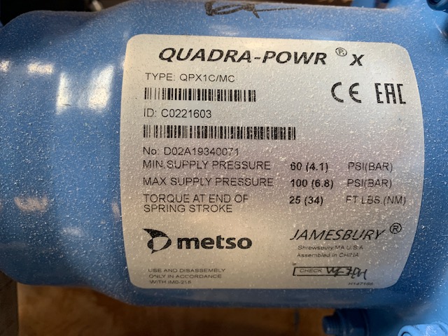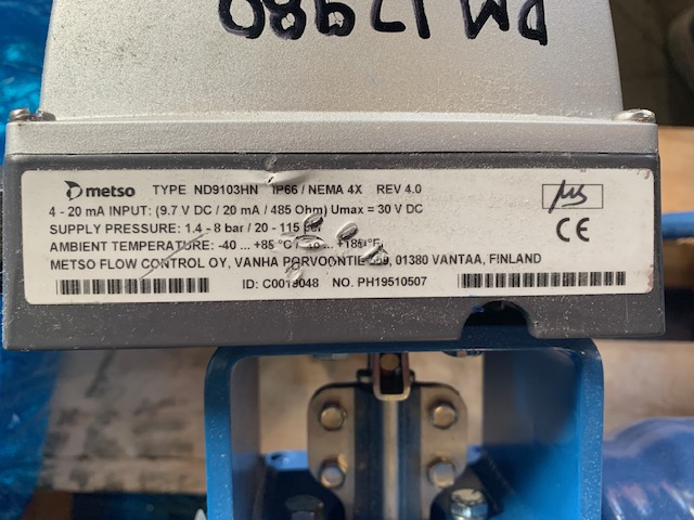 New surplus Neles/Jamesbury 1″-150#Â v-ball valve with pneumatic actuator; 316ss; Metso electro-pneumatic positioner 4-20mA