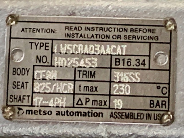 New Storeroom Spare 3″-150# Neles Jamesbury Butterfly Valve, Air Operated, with Quartz Switch