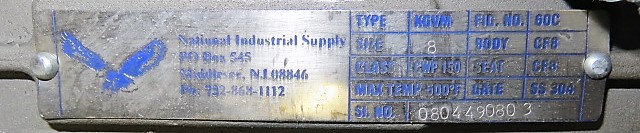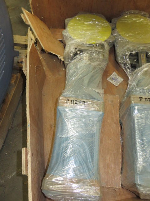 New Surplus NSI National Industrial Supply 8″-150 A-C Knife Gate valve, air operated, seat, body and gate material 316