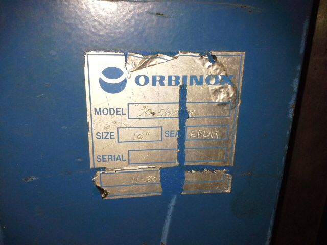 Orbinox 10″-150 knife gate valve, hand wheel operated, 316ss material, used condition
