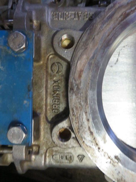 Orbinox 8″-150 knife gate valve, hand wheel operated, 316ss material, used condition