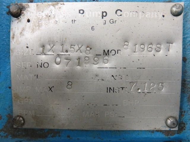 Peerless Pump model 8196 size 1×1.5×8 with base and motor