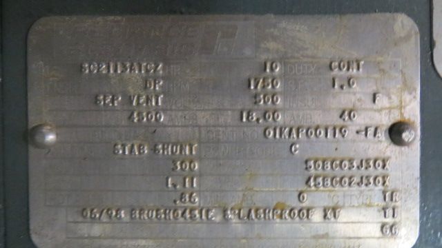 Reliance 10 Hp Dc Motor, Storeroom Spare With Lakeshore, 8500 Series Tachometer, 500 Volt, 1750 Rpm.