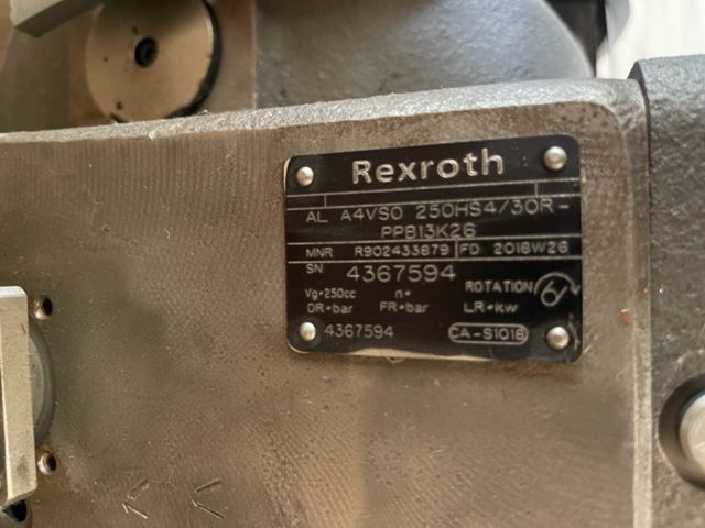 Description: Manufacture: Brueninghaus Hydromatik Type: AA10VS8DNR/31R-PKC62N00 Year: 05/95 Drive Speed: 1750..Hydraulic Pump HAXRG902160XXHRD0-Z000060, Rebuilt (Year 2019) Storeroom Spare
