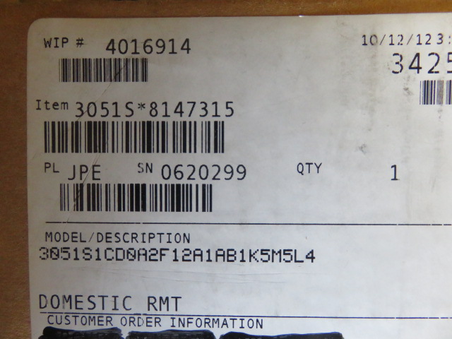 Rosemount 3051S1CD0A2F12A1AB1K5M5L4 , Cal. 0-3″ H2O Unused