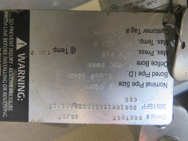 Rosemount 3051SFP DS010W10500D32AA1A1BCE5 Nominal Pipe Size 1″, Unused