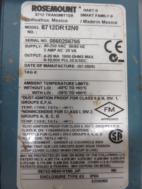 Used  Rosemount 8712DR12N0 Remote Mount Magnetic Flowmeter Control