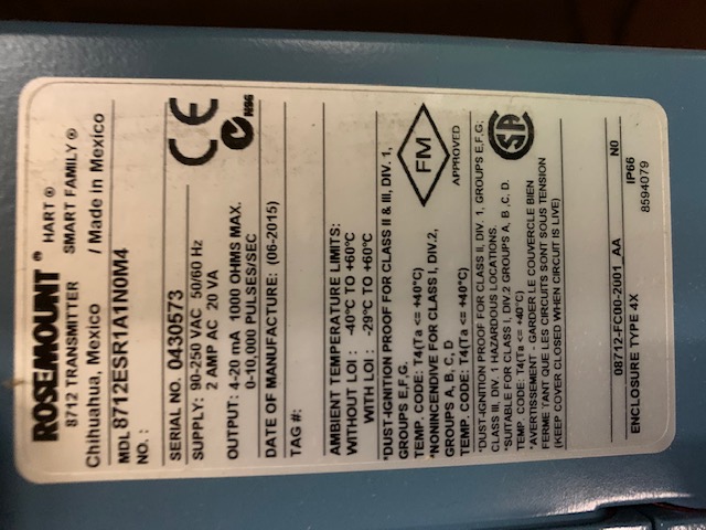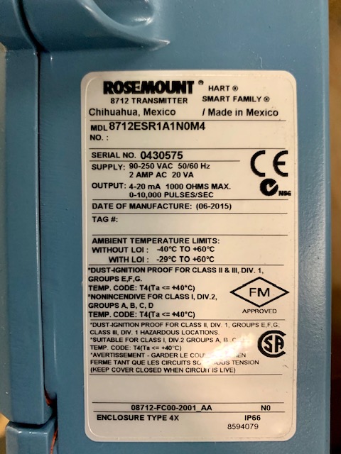 Unused Condition! Rosemount 8712ESR Remote Mount Flowmeter Display unit