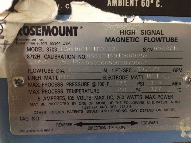 ROSEMOUNT HIGH SIGNAL MAGNETIC FLOWTUBE MODEL 8703 THA040S1L1F0112, SIZE 4″, new condition