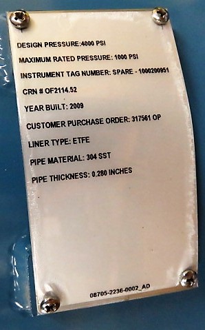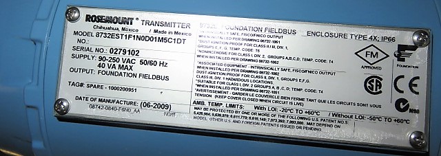 New Surplus Rosemount magnetic flowtube series 8700, size 6″ class 600; liner type ETFE, max press 285 psi; complete with 8732 EST1F1N0D01M5C1DT integral mount transmitter.