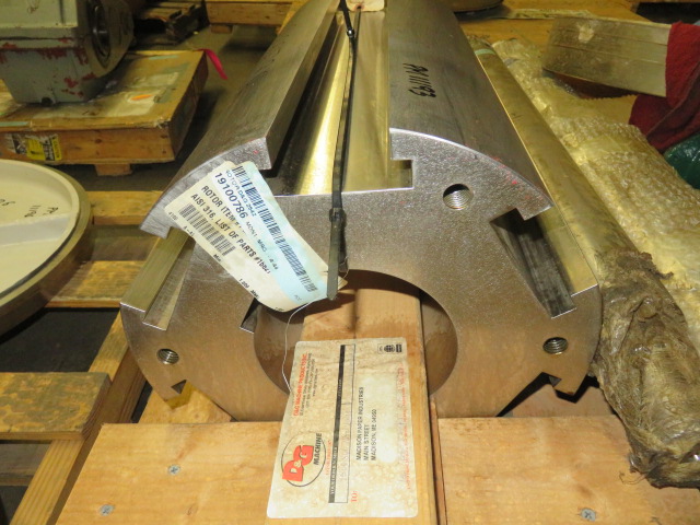 Used- Fluid Quip Horizontal Rotor Impact Mill, Model FQ-IM40H, Stainless Steel. Approximate 48″ diameter rotor, dual top infeed, bottom discharge with removable hopper, rpm 3100 maximum. Driven by a 600hp, 3/60/2300-4160 volt, 1785 rpm motor. Mounted on (4) carbon steel legs. Serial# 11IM3777.