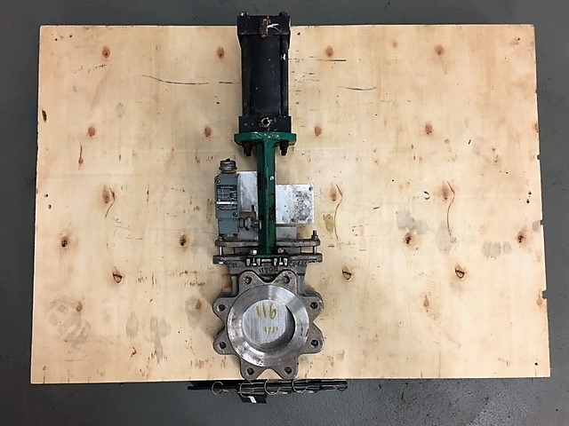 Rovalve 4″-150 knifegate valve with pneumatic actuator; material body, gate, seat: 316 stainless