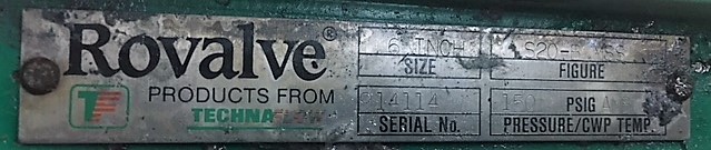 Rovalve 6″-150 knifegate valve with pneumatic actuator; material body, disc, seat: 316 stainless; figure S20