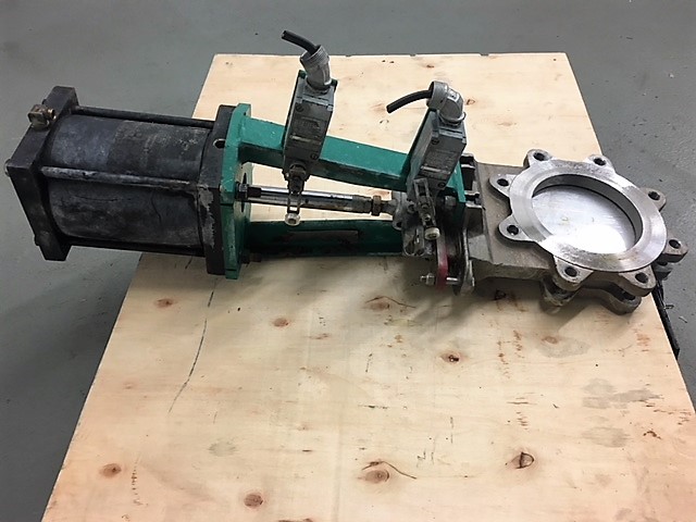 Rovalve 6″-150 knifegate valve with pneumatic actuator; material body, disc, seat: 316 stainless; figure S20