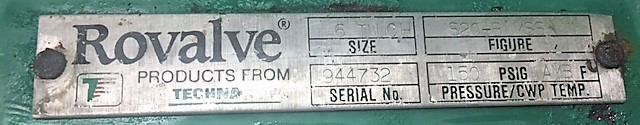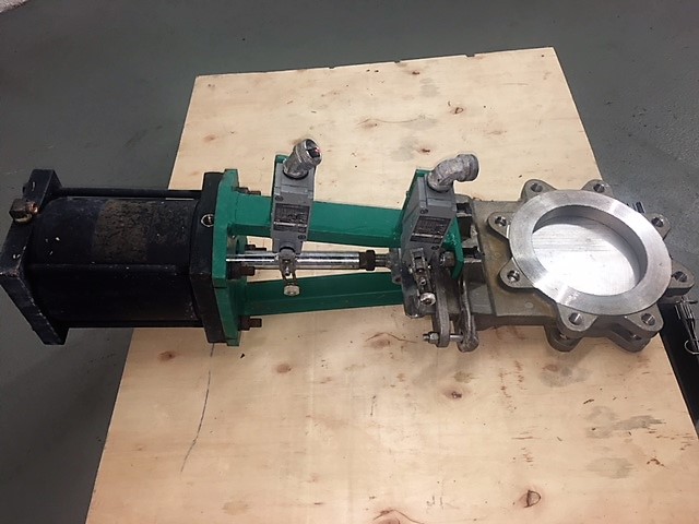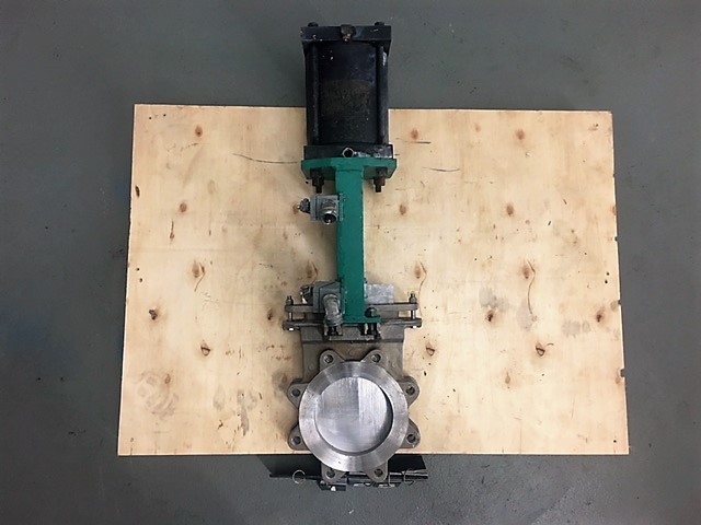 Rovalve 6″-150 knifegate valve with pneumatic actuator; material body, disc, seat: 316 stainless; figure S20